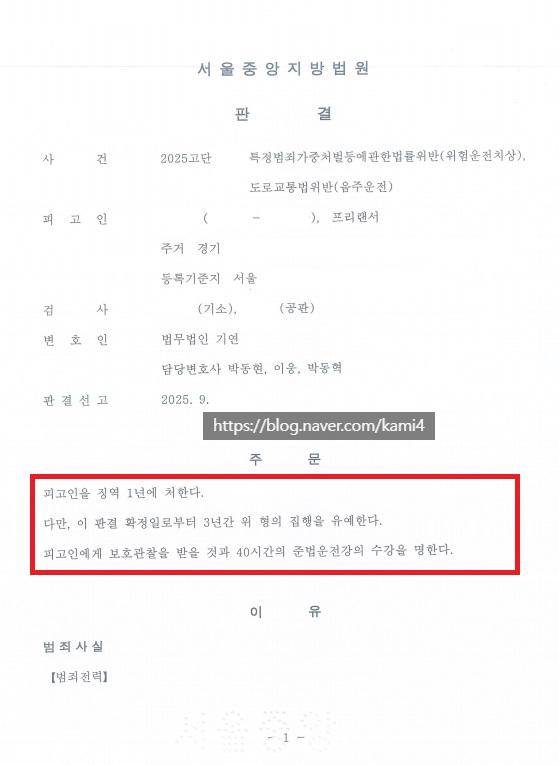 | 음주운전 -성공사례 항소심 집행유예- 음주 4진아웃 (음주 4회 아웃)성공사례- 음주운전 4회 1심 징역 8월 법정구속 (음주 4회, 음주 4진아웃, 음주운전 4번)수원지방법원 실형을 면해야하는 상황변호인 조력을 받아 집행유예 선처, 석방됨 |