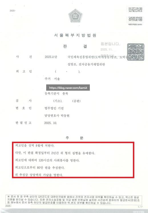 집행유예- 전자금융거래법위반, 국민체육진흥법위반(도박개장등)방조, 도박공간개설방조